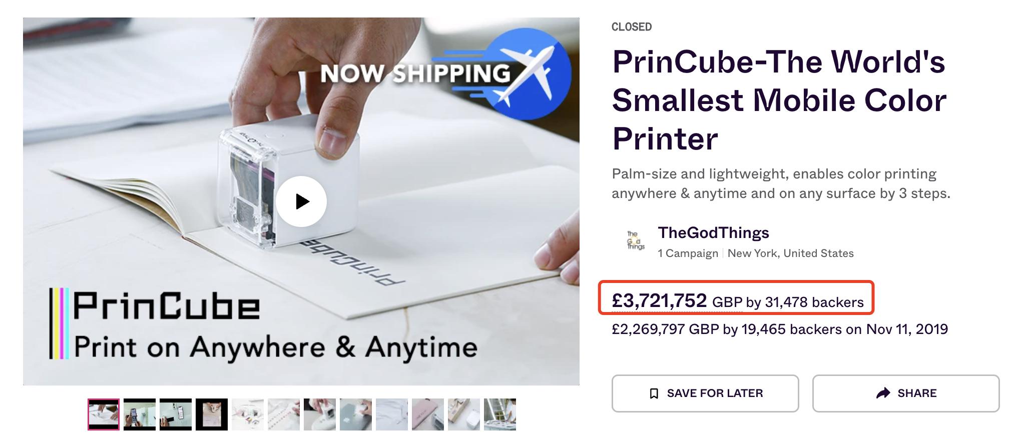 众筹视频是PrinCube成功的重要驱动因素。