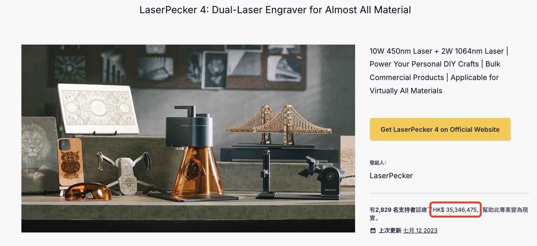 LaserPecker深知众筹页面是品牌展示的核心窗口,通过细致设计成功传递产品价值。