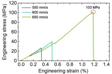 △使用 L-PBF 在不同扫描速度下获得的钢/铝合金多材料界面强度