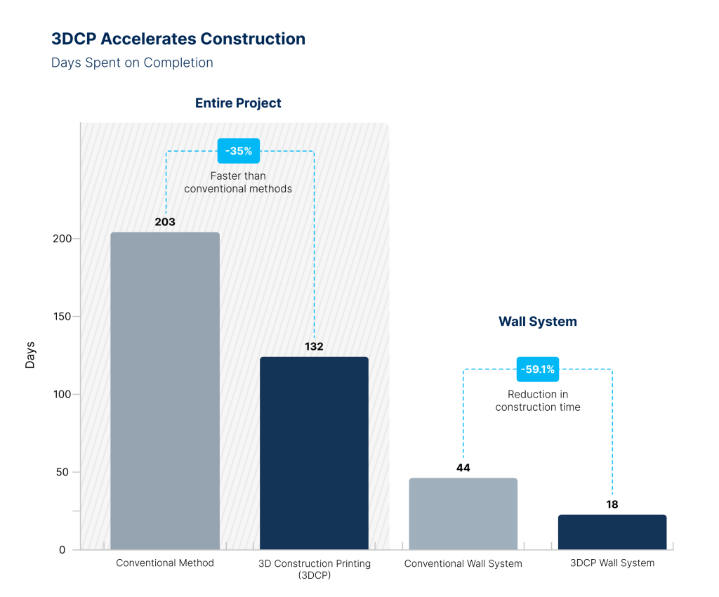 △3D 打印社会住房项目完工时间与传统方法相比有所缩短。照片来自 COBOD International。