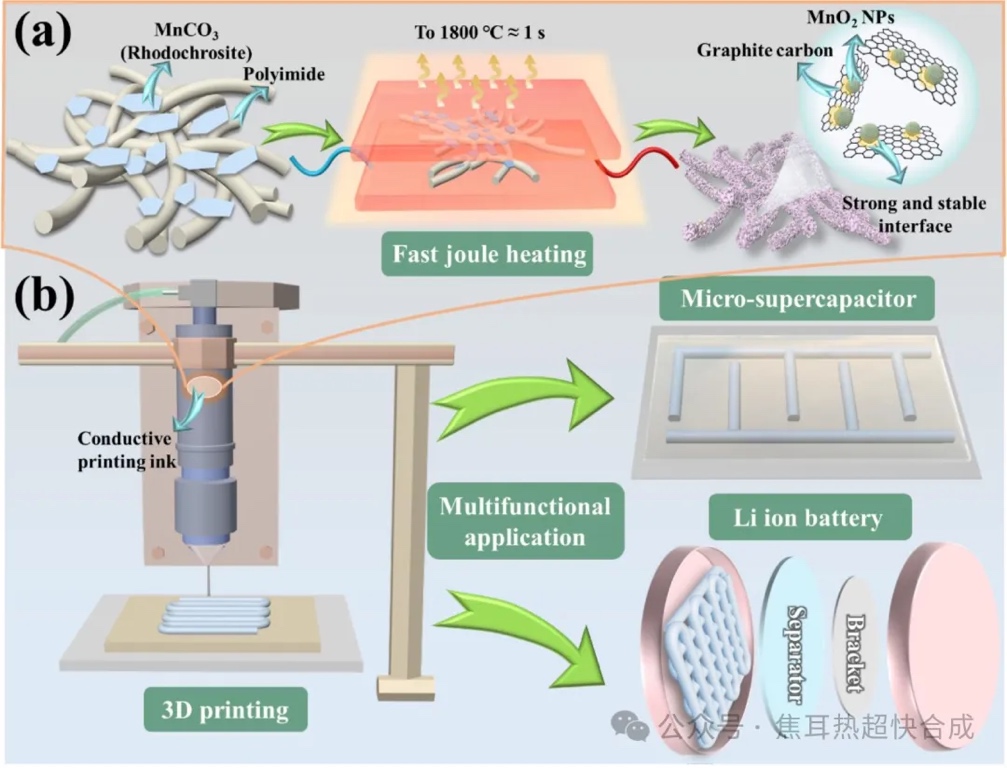 焦耳热与3D打印结合,快速制备高效多孔MnO₂/碳复合电极