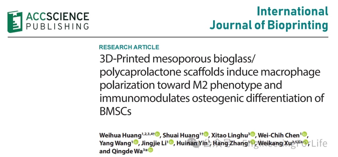 3D打印介孔生物玻璃/PCL支架诱导巨噬细胞向M2表型极化,并免疫调节BMSCs的成骨分化