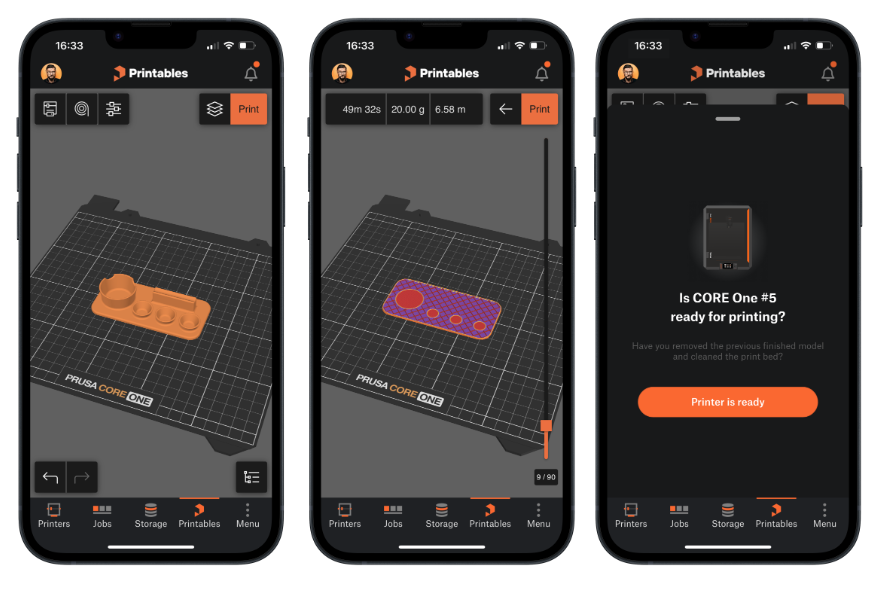 此款APP提供了材料状态评估和打印机准备就绪验证等附加功能。用户开始打印后,APP就会自动将模型发送到在云服务器上运行的 PrusaSlicer。生成 G 代码后,再将其发送到打印机。由于APP在后端运行 PrusaSlicer,因此与PrusaSlicer 的其他切片器(如 Orca 和 BambuStudio)兼容,这有望会支持非 Prusa 3D 用户。