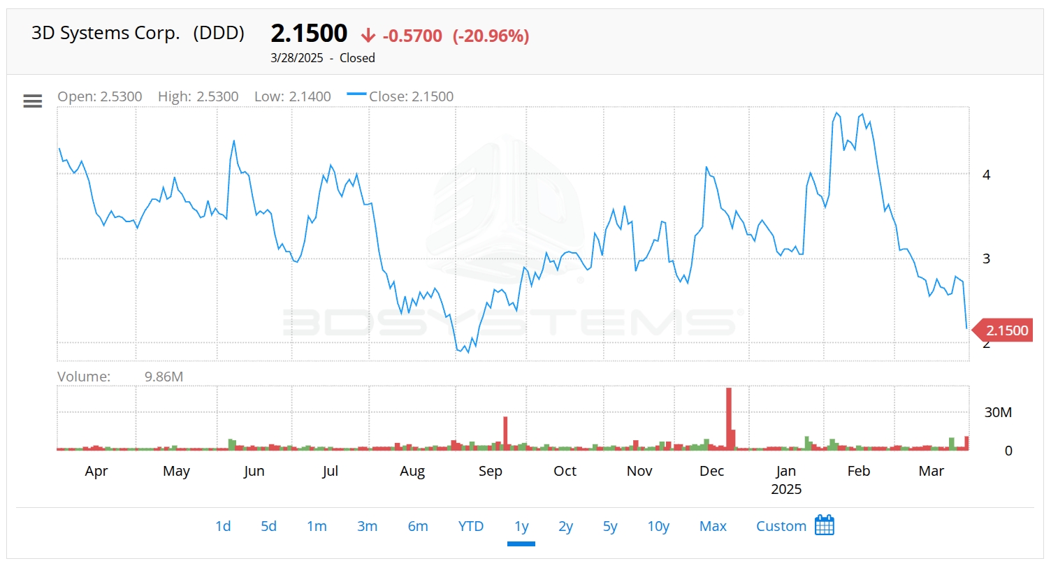 3D Systems 2024财年受收入下降10%和净亏损超过2.55亿美元,导致股价暴跌