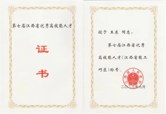 获第七届江西省优秀高技能人才“江西省能工巧匠”称号;