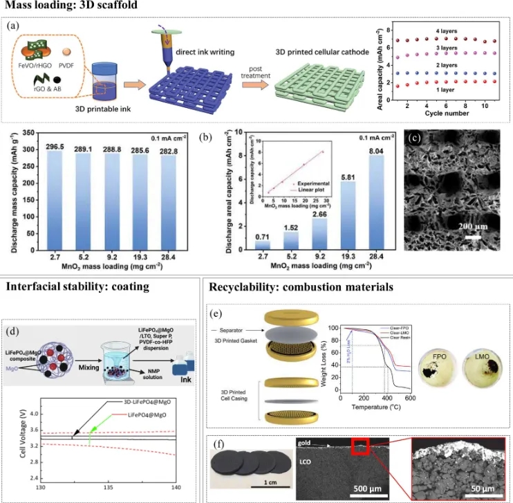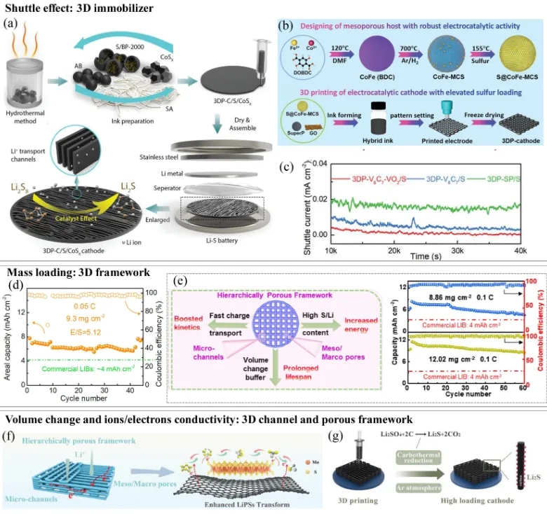 随着便携电子设备和电动汽车的普及,对高性能电池的需求持续增长。传统锂离子电池因能量密度、寿命和安全性受限,难以满足需求。锂硫电池、锂金属电池等新型电池虽具潜力,但受制于电极材料和电解质的局限。3D打印作为一种新兴制造技术,以其高设计灵活性、成本效益和低废料生成,在电池制造领域展现出巨大潜力。它能快速构建复杂3D结构,克服传统制造方法在电极几何形状和架构控制上的不足,为电池性能提升提供新途径。