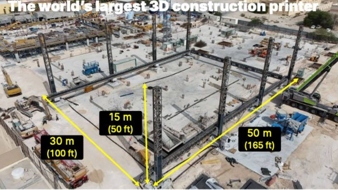 2025年6月,全球最大的3D建筑打印机 BODXL 在 Qatar (卡塔尔)首都 Doha (多哈)的一所学校建设工地正式启用。设备由丹麦 3D 建筑打印技术公司 COBOD International 研发,并与 Qatar 当地的国际能源、特许经营和建筑企业 UCC Holding 合作运营。
