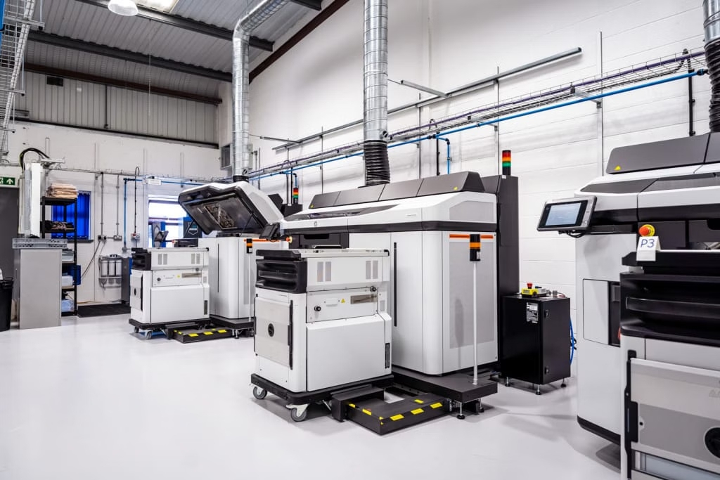 Midlands 3D表示,此次搬迁使公司生产面积扩大四倍以上,并对HP Multi Jet Fusion (MJF)打印机阵列进行了全面升级。每台MJF打印机均配备了先进的自动化系统,可在构建完成后自动更换构建单元,实现无缝衔接,极大提升了生产效率与产能。