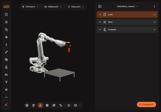 该产品将Massive Dimension的挤出硬件与Aibuild可靠且久经行业考验的软件平台强强融合。MD Software集成了Aibuild的功能,包括参数化切片方法、分析工具以及Mold Designer等自动化设计解决方案,旨在提升Massive Dimension挤出设备的性能。Aibuild首席执行官兼联合创始人Daghan Cam表示:“与Massive Dimension的合作,标志着Aibuild向全平台化扩展模式迈出了坚实一步。我们能够针对合作伙伴硬件的特性,量身定制解决方案,同时保障工厂车间的系统完整性。”