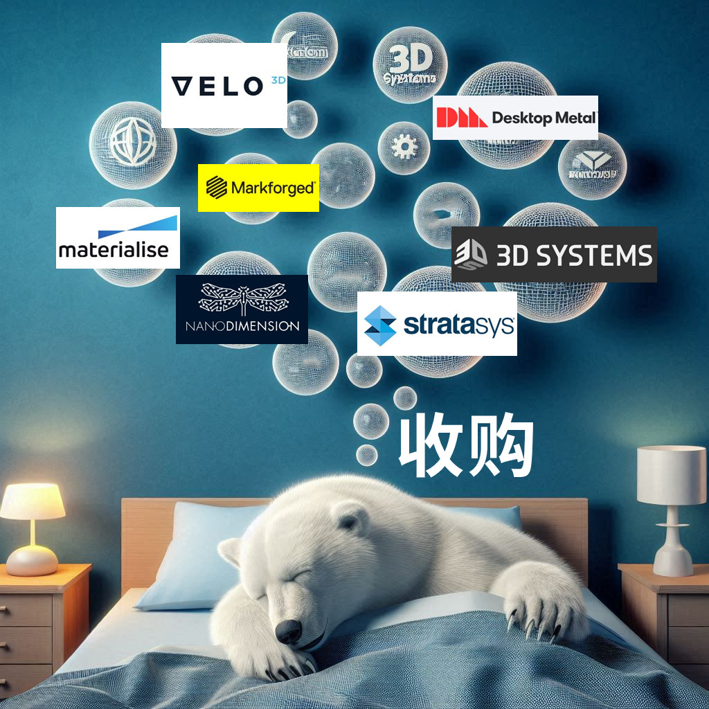 2025年3月29日晚,南极熊做了春秋大梦,和一批投资机构、银行、上市公司等合作,筹集到了200多亿元人民币,约28亿美元,一下子把所有国外3D打印领域的上市公司全部收购了,包括Stratasys、3D Systems、Nano Dimension 、Materialise 、Desktop Metal 、Markforged、Velo3D等,然后打包所有资产,经营5年后,拿到A股值2900亿。