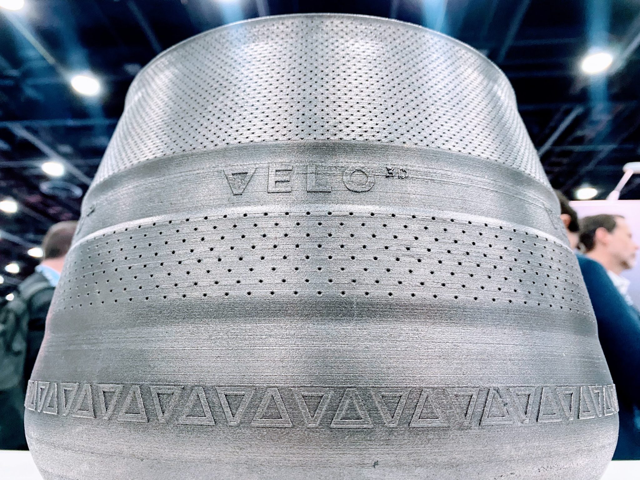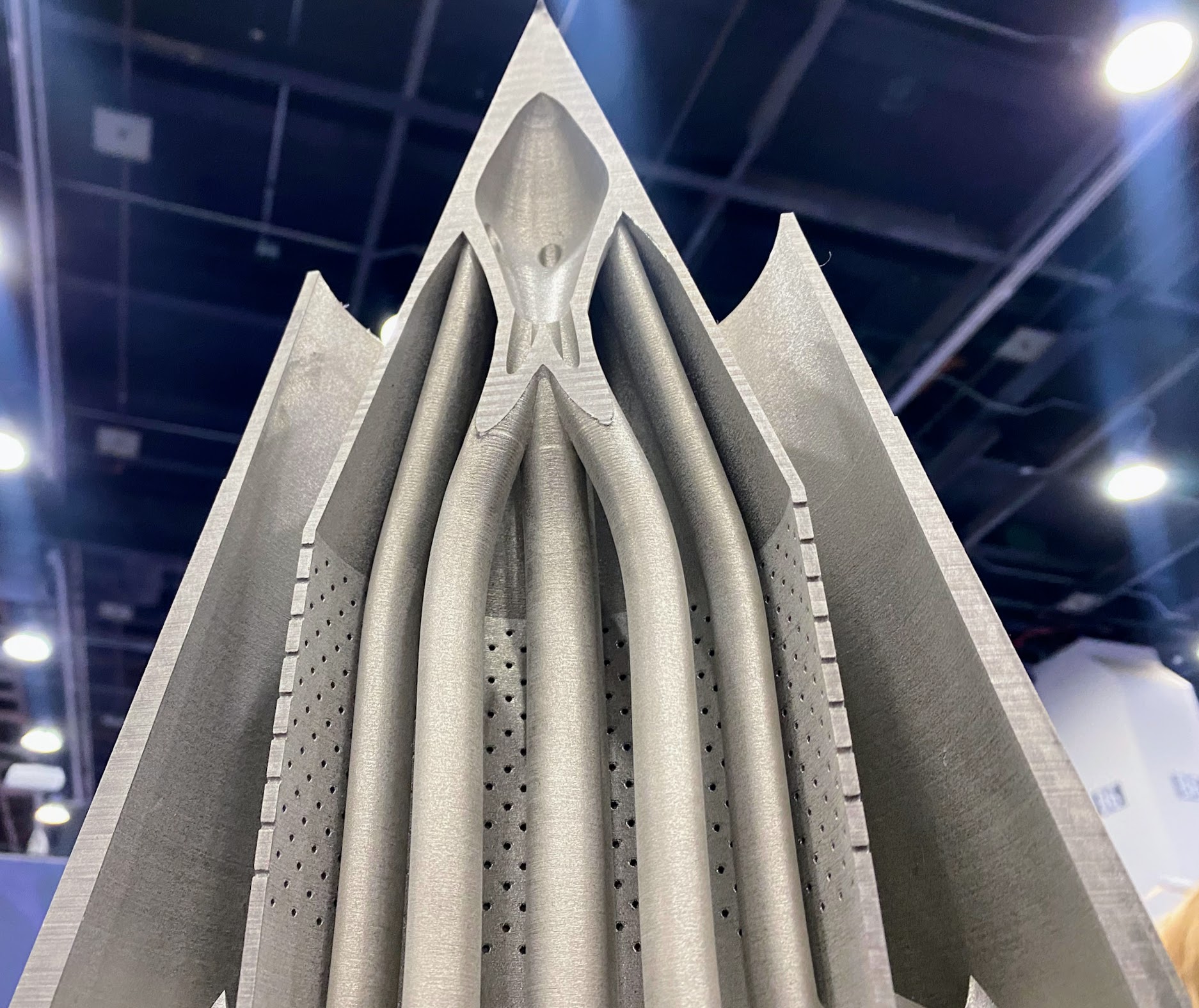 △使用 Velo3D 的 Sapphire 技术 3D 打印的零件在 RAPID + TCT 2025 上展出。