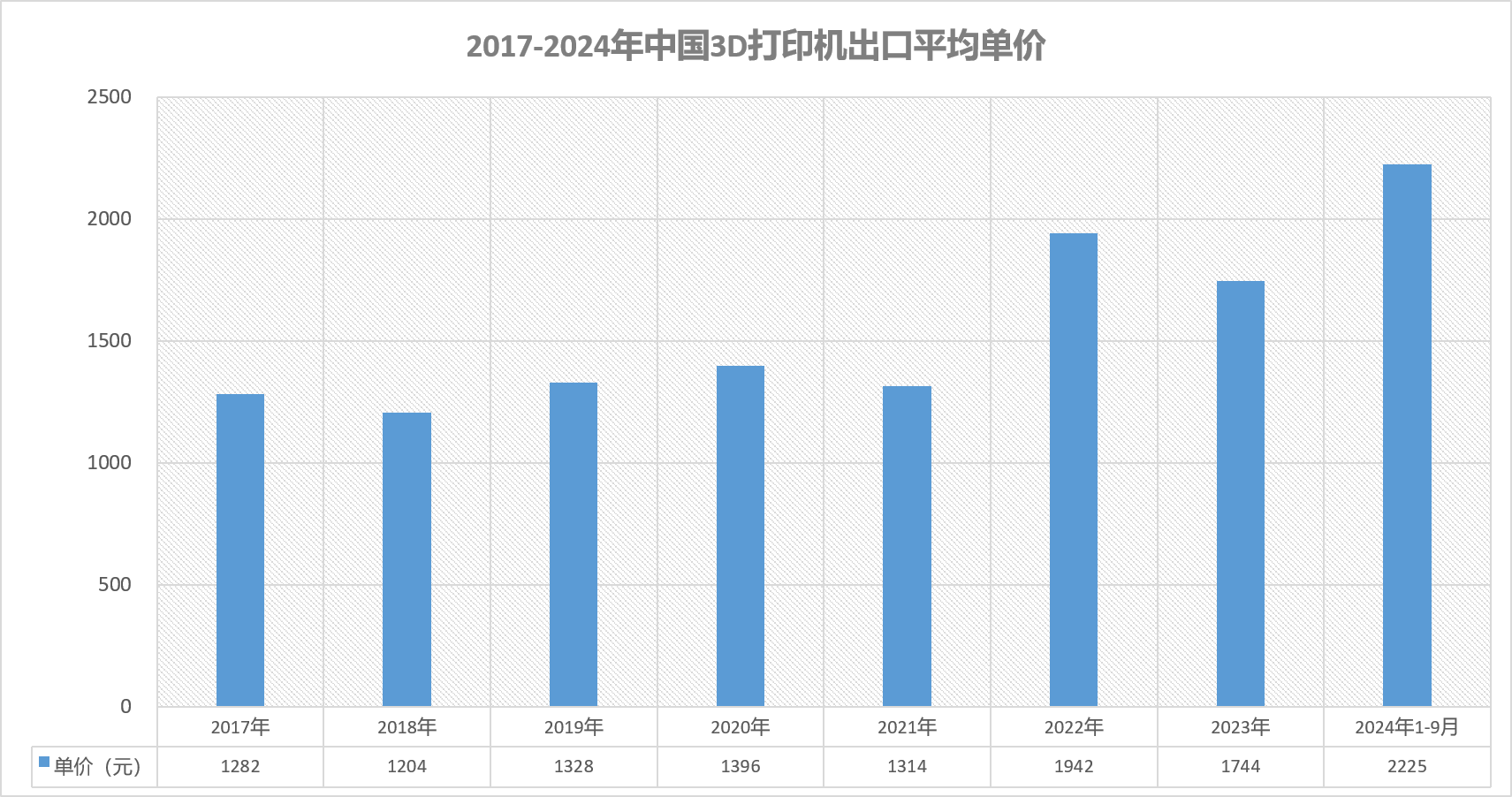 中国海关:2024年前三季度3D打印设备出口284.5万台,金额63.3亿元超越去年全年