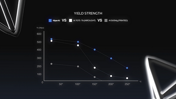 △HiperAL在250°C时仍能保持183 MPa的屈服强度