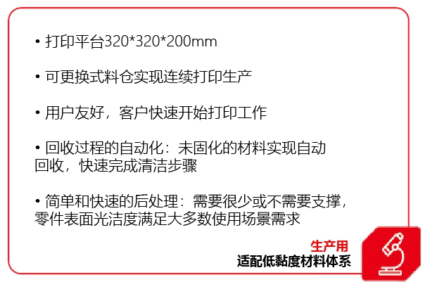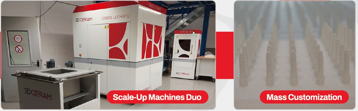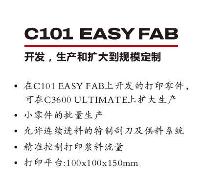 目前,武汉三维陶瓷提供全场景应用的陶瓷3D打印机,可以应用在实验室测试到批量生产等场景。C100Easy标准平台为100*100*150mm的单激光器单材料光固化陶瓷打印机,可以选配多材料打印套件、60mm的打印小平台等,非常适合实验室场景的使用。C1000 FLEXMATIC是标准平台为320*320*200mm的光固化陶瓷打印机,很适合生产级光固化打印以及半自动化生产线,可以选配双激光器、可拆卸式打印平台和自动化清扫装置。