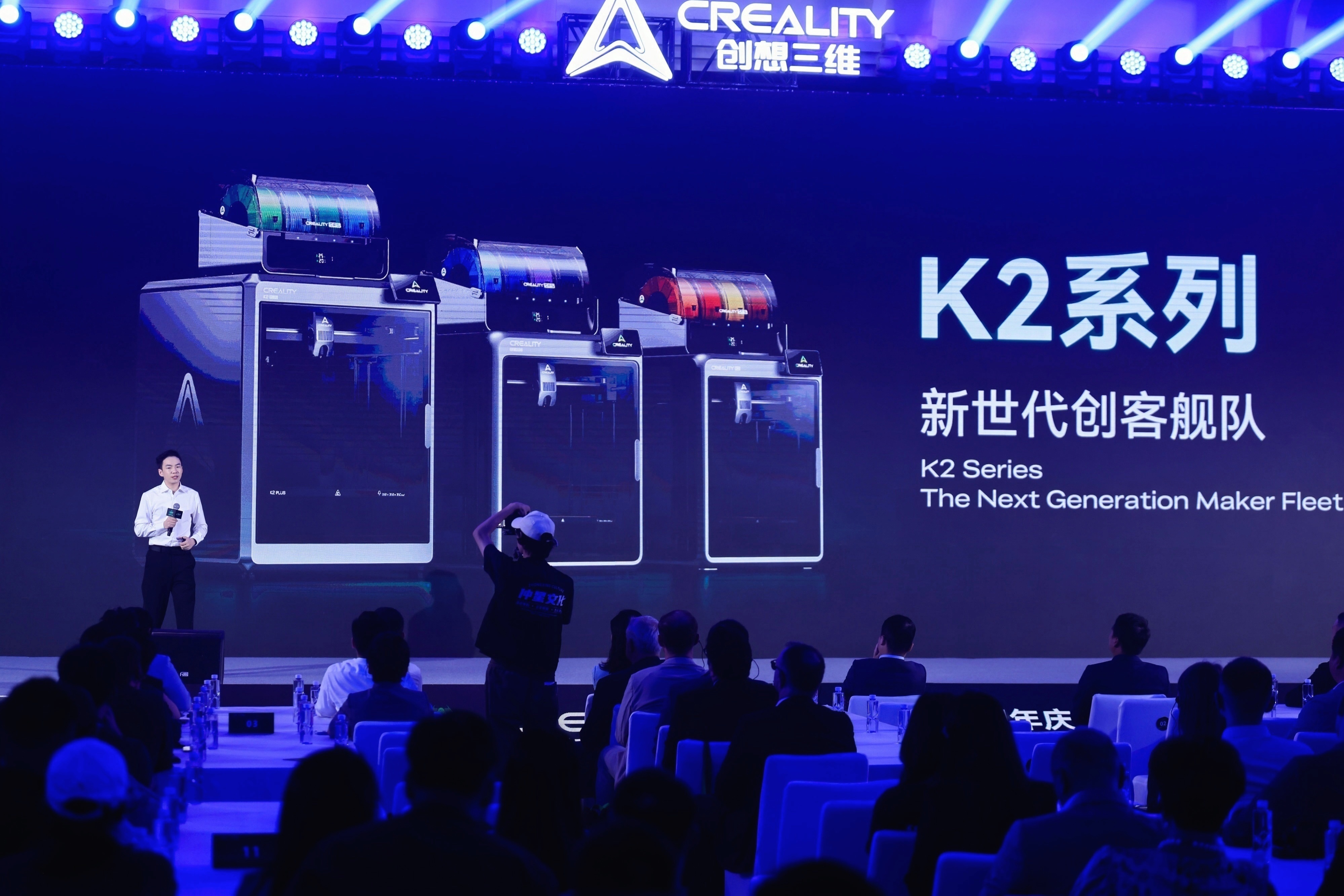在新品发布环节,创想三维技术代表详细介绍了K2系列的创新亮点。去年发布的K2 Plus被誉为“3D打印行业新标杆”,将AI技术、全自动校准以及16色耗材支持融入其中,重构桌面级3D打印的创新生态。今年,K2系列在继承核心技术的基础上,进一步分化为两种产品形态,以满足不同用户需求。