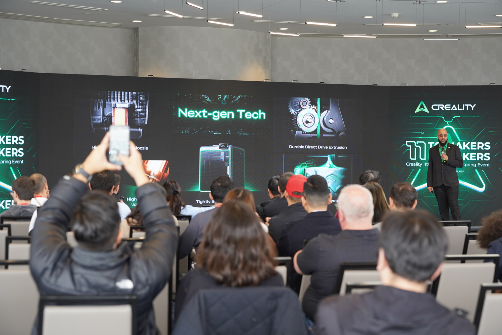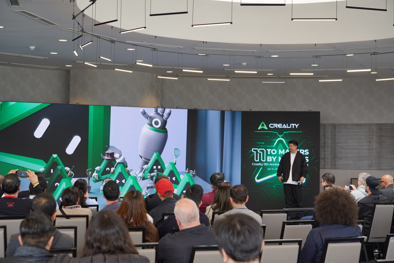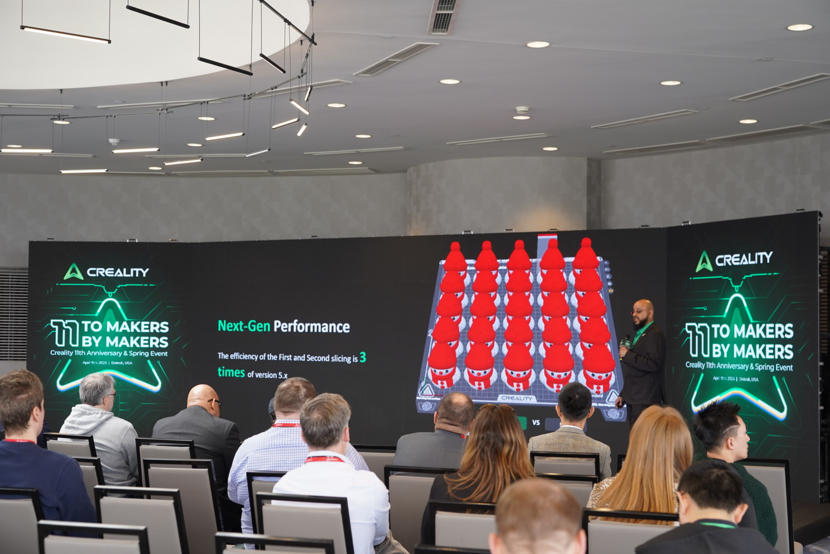2025年4月9日,全球消费级3D打印领军品牌创想三维(Creality)在中国深圳、美国底特律两地举办“创想三维十一周年庆典暨春季新品发布会”。公司联合创始人陈春、敖丹军、刘辉林、唐京科与来自全球的行业专家、核心经销商合作伙伴、供应链合作伙伴及媒体代表共同见证品牌里程碑时刻。