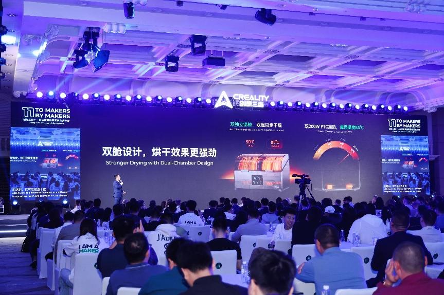 发布会开始前,创想三维联合创始人、总经理敖丹军发表致辞。他表示,过去11年,创想三维最珍贵的领悟是:创想三维从来不是一家“制造公司”,而是一个“创造者生态平台”。创想三维当前供应商合作伙伴近300家,产品远销100多个国家和地区,11年以来累计销售600余万台机器,这些数字奇迹是一部由供应链、渠道商与品牌方共同书写的三维世界创造史。
