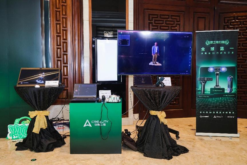 除此之外,现场也带来了创想三维扫描仪与国际知名公司共同推出的3D扫描与空间现实显示一体化解决方案。不用额外佩戴特殊眼镜或VR外设,就可以体验生动、立体和震撼的4K裸眼3D效果,让人物“动”起来,让商品“活”起来,3D效果跃然屏上。用户可通过裸眼3D技术,直观审视扫描细节,体验极致空间交互。该解决方案将不断推动技术+内容+硬件的合作,这一合作将革新工业设计、汽车改装、文创艺术等领域,推动三维数字化技术普及。