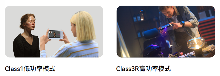 基于智能、精确的MEMS蓝光投影技术,Toucan能够支持双功率扫描模式,以适应不同材质物体的扫描需求。其中,低功率模式(Class 1)采用的是对人眼安全的光源模式,面部扫描可放心用;高功率模式(Class 3R)则对于暗光环境、低反光物体有较强的穿透力,扫描精度不打折。