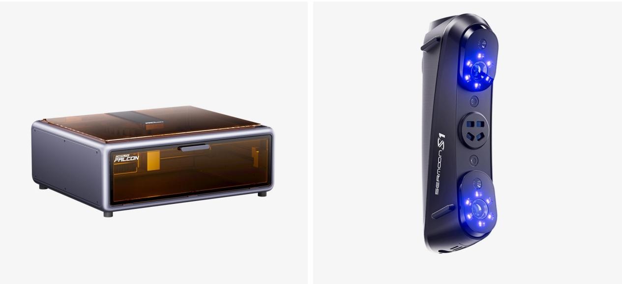 • 跨品类创新布局持续突破,Falcon系列激光雕刻机适配350余种材料;Sermoon S1 3D扫描仪作为专业型扫描仪则拥有多光源配置与高精度采集能力,为创意实现提供更多可能。