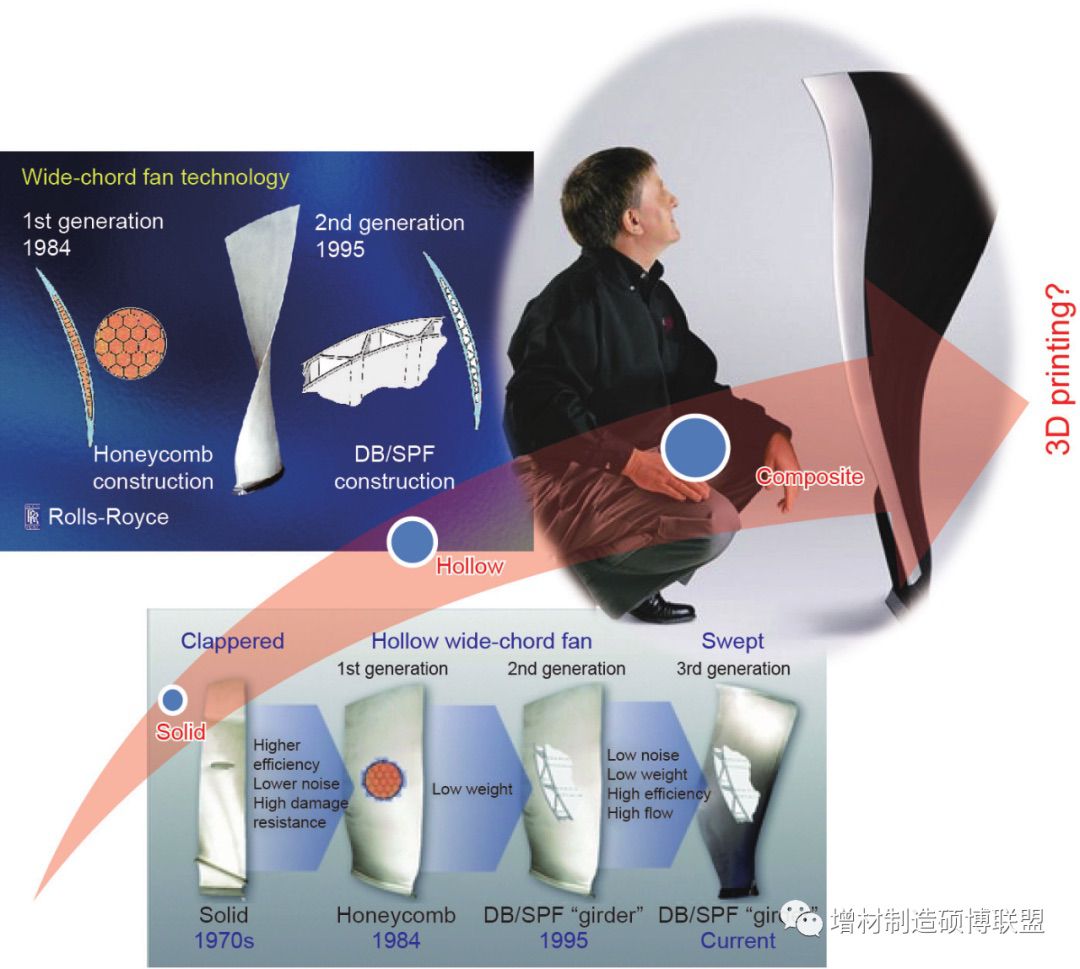 图3. 当前的扇叶设计方法和未来的扇叶设计。DB / SPF:扩散黏合/片材超塑成形。