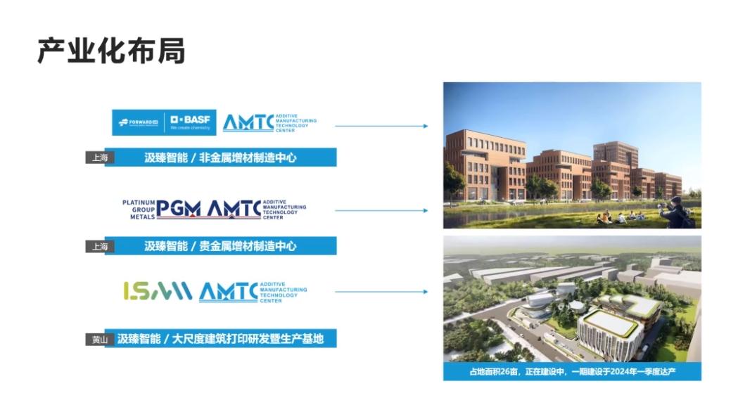 2021年,上海汲臻智能科技有限公司成立,专注于增材制造产业化生态发展。目前在国内有三个产业化基地,分别是位于上海的非金属增材制造中心、位于上海的贵金属增材制造中心和位于黄山的大尺度建筑打印研发暨生产基地。