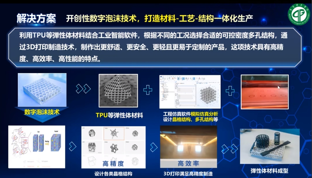 李楠副教授团队利用TPU等弹性体材料结合工业智能软件,根据不同的工况选择合适的可控密度多孔结构,通过使用盈普三维的SLS 3D打印机,制作出更舒适、更安全、更轻且更易于定制的产品,这项技术具有高精度、高效率、高性能的特点。