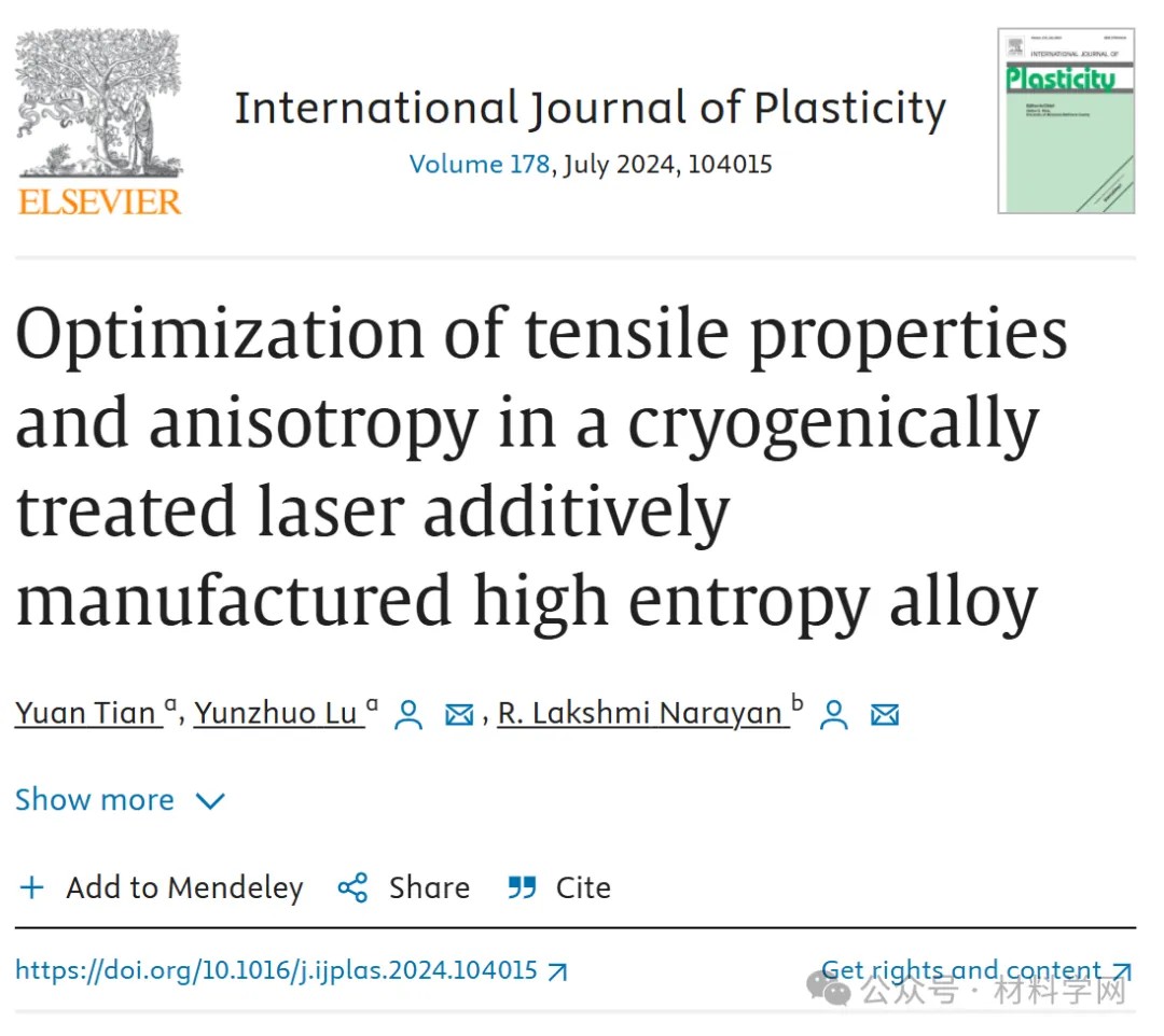 大连交通大学塑性顶刊:低温深冷处理激光增材制造高熵合金拉伸性能和各向异性的优化