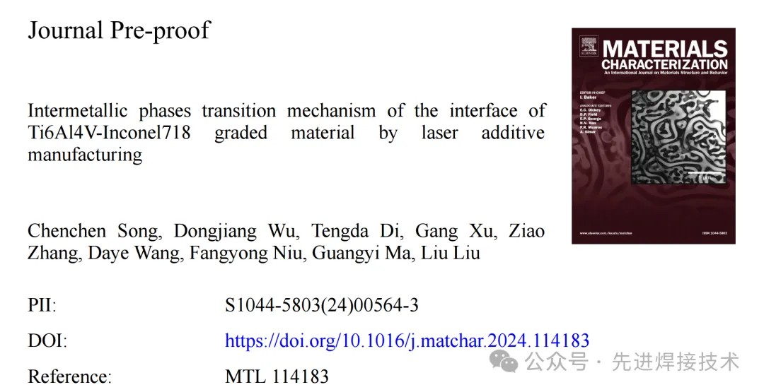 718梯度材料的界面金属间相变机制”的论文。本研究采用激光增材制造技术制备Ti6Al4V-Inconel