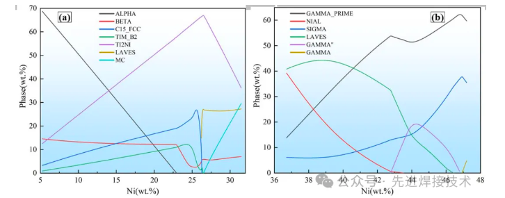 由于Ti6Al4V-Inconel 718梯度材料在连接时产生的Ti2Ni和TiNi等脆性金属间化合物,会导致界面显微硬度提高,界面处发生开裂,限制了其应用。针对这一问题,学者们通过添加过渡层、优化添加剂工艺参数、热处理等方式减少脆性相的产生,抑制裂纹的产生。目前,对Ti6Al4V-Inconel 718梯度界面金属间化合物相的类型、形成及转变机制的研究还不够深入。两种材料界面处金属间相的转变和分布不清楚。因此,本文采用激光增材制造技术制备了Ti6Al4V-Inconel 718梯度材料,通过热力学计算预测了界面各区域金属间相的种类和含量的变化规律,分析了Ti6Al4V-Inconel 718梯度界面不同区域金属间化合物相的分布,揭示了合金中主要元素Ti、Ni的转变及金属间化合物相的形成路径,对梯度材料中金属间相的调控提供理论依据。
