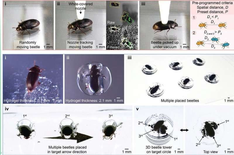 该研究还可能推动自主生物制造的发展,通过评估和组装生物体,探索新的应用可能性。例如,系统已经被用于改进斑马鱼胚胎的冷冻保存方法,相较于以往依赖手动操作的过程,新技术实现了处理速度提升12倍。另一个例子展示了其自适应策略如何有效跟踪、拾取和放置随机移动的甲虫,并将其与功能设备整合在一起。