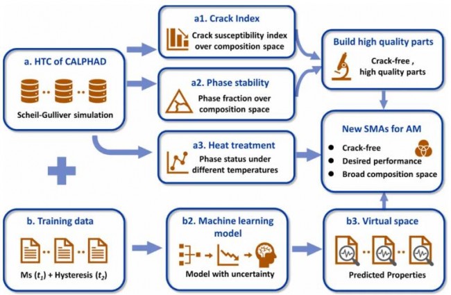 为了克服这些限制,研究人员开始探索通过计算材料学方法,如CALculation of PHAse Diagram (CALPHAD)和机器学习(Machine Learning, ML)技术,来设计新型NiTiCu合金成分,以实现无裂纹的增材制造和可定制的相变行为。