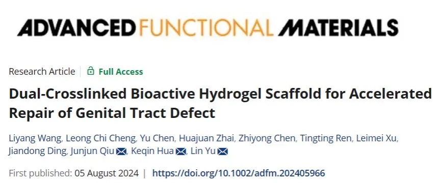 近期,复旦大学高分子科学系俞麟教授和复旦大学附属妇产科医院华克勤教授团队合作开发了一种能够对生殖道提供充分的力学支撑且可加速MRKH患者生殖道创面修复的3D打印的双交联活性水凝胶支架(图1)。