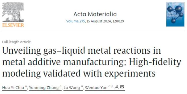 近日,新加坡国立大学苏州研究院(以下简称“新国大苏研院”)能源与环境纳米科技创新平台研究员闫文韬及团队成员在国际学术期刊《材料学报》(Acta Materialia)上发表研究成果。研究团队通过高保真模型揭示了金属增材制造过程中气体与熔池反应的复杂机制。这一发现不仅为增材制造领域提供了深入的理论支持,也为优化制造过程和开发新型材料开辟了新途径。