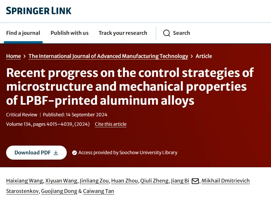 燕山大学先进锻压成形技术与科学教育部重点实验室、中国兵器工业集团航空弹药研究所、阿尔泰国立技术大学及哈尔滨工业大学的科研人员报道了LPBF打印铝合金微观结构和力学性能控制策略的最新进展研究。相关研究成果以“Recent progress on the control strategies of microstructure and mechanical properties of LPBF-printed aluminum alloys”为题发表在《The International Journal of Advanced Manufacturing Technology》上。