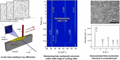 △科研人员采用沉淀硬化不锈钢制造策略,该设计由原位高速、高能、高分辨率X射线衍射揭示的相变动力学指导