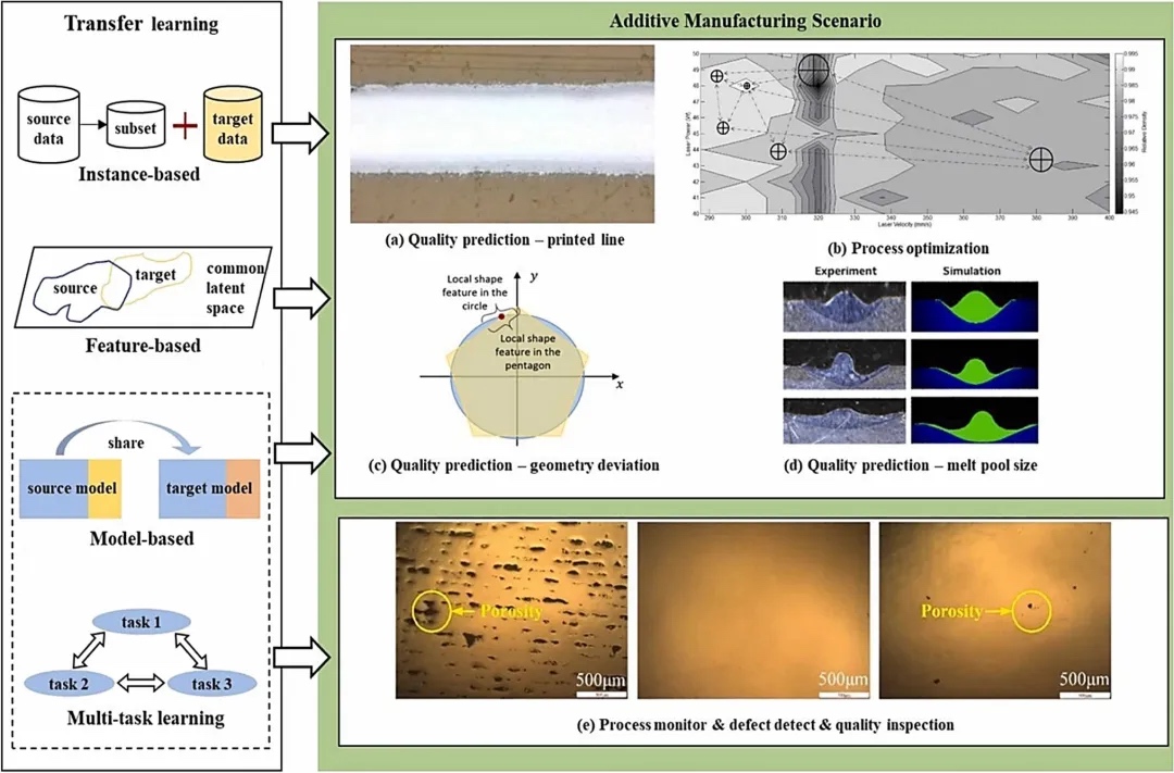 图10 TL在AM中的应用,包括工艺优化、几何偏差预测、熔池尺寸预测和缺陷检测。