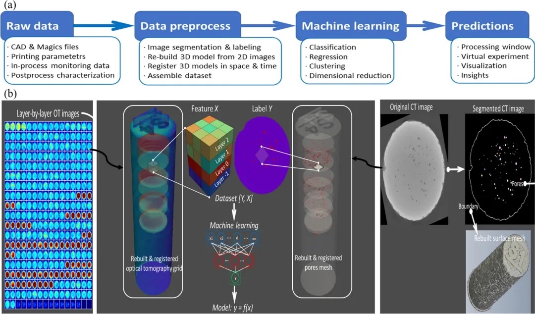 图9利用OT和CT图像作为ML数据,预测LPBF中出现的缺陷。