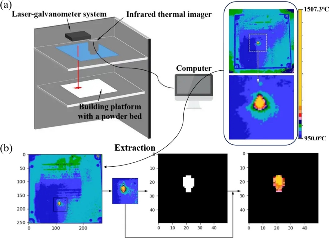图7红外热成像技术收集熔池图像并提取熔池轮廓。