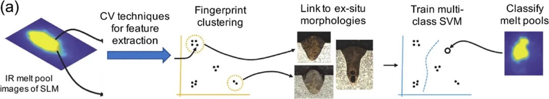 图5根据红外摄像机拍摄的熔池图像,使用SVM对熔池形态进行分类的过程。