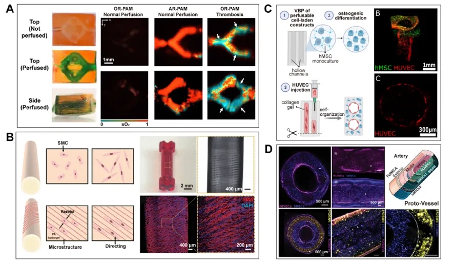 图7 在生物打印技术和血管化组织修复与再生方面取得的进展
