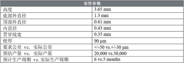 由于医疗设备对质量的严格要求 ,博世先进陶瓷的技术团队需要在满⾜客⼾⾼质量标 准的前提下 ,完成每年⽣产20000个零件 的⽬标。 表1展⽰了绝缘套管的关键参数。