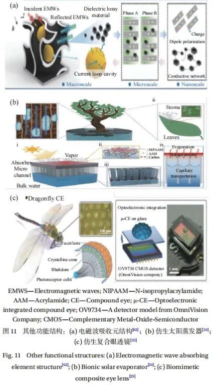 3D打印仿生结构不仅可以实现传感、驱动功能,并在生物医学工程上具有广泛的应用前景,也可以实现其他特殊功能如电磁波吸收、太阳能转换、光学成像等。利用3D打印的灵活性和精确性,结合仿生学的原理,制造设计出具有复杂形状和优化性能的结构,为未来的创新提供了巨大的潜力。