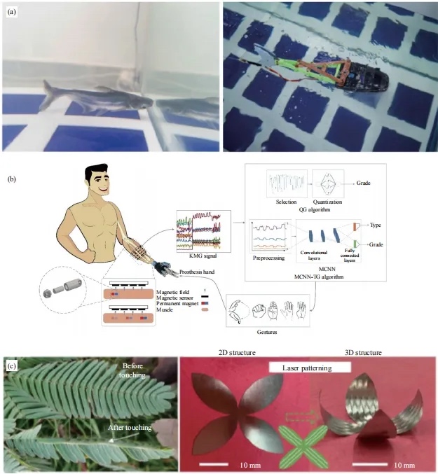 自然界中的生物,存在不同的运动规律。仿生驱动结构受到生物体运动机制和力学原理启发,以实现高效、灵活和适应性强的运动控制。例如巴沙鱼、生物肌肉结构、含羞草等的运动机制能够为仿生驱动结构带来设计灵感。利用增材制造技术灵活制造出结构复杂、精度高、驱动性能好的仿生驱动结构,如电驱动、磁驱动、气动等驱动器,使其能够在不同环境中满足驱动功能,为驱动器领域开辟了一条新的道路,用于改进机器人、交通工具、医疗设备等领域的运动控制和机构设计。