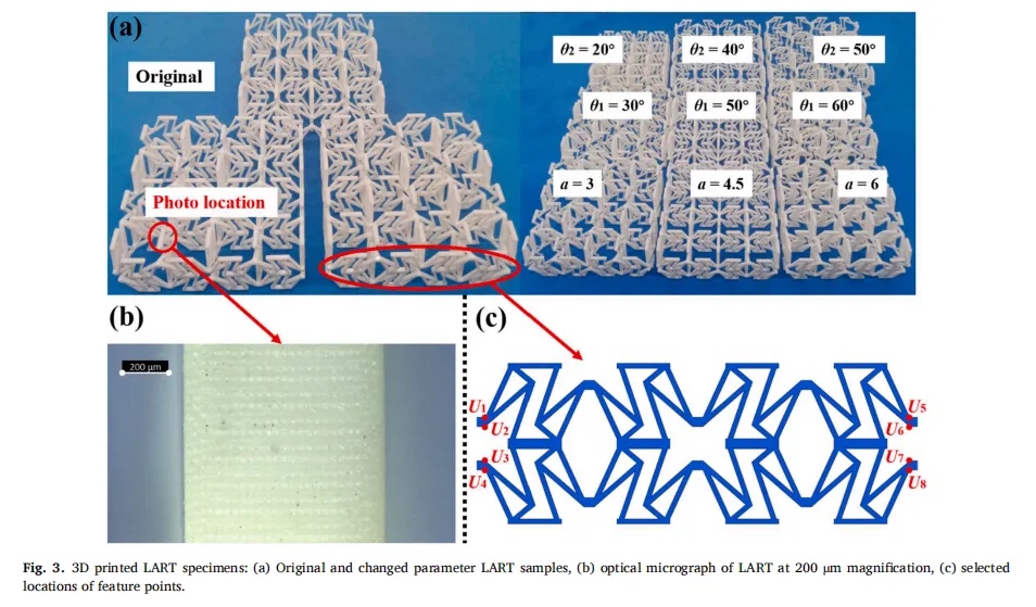 Auxetic Metamaterials 是一类通过人工设计内部 Auxetic 结构实现的具有负泊松比 (NPR) 性能的功能材料,由于其优异的抗冲击性、高比刚度和独特的力学行为,在航空航天、造船等领域具有广阔的应用前景。在这项工作中,我们提出了一种基于二维 (2D) ART 的新型三维 (3D) 晶格不对称凹角三角形 (LART) 结构 (LART),样品是通过液晶显示器 (LCD) 3D 打印技术制造的。