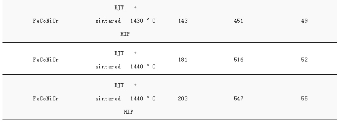 L.Chen等人探讨了烧结温度和热等静压(HIP)对通过BJT制备的等原子FeNiCoCr HEA样品的微观结构、力学性能和电化学行为的影响。烧结样品显示出单一的FCC相,相对密度随着烧结温度的升高而增加。HIP显著提高了样品的密度和机械性能。钝化膜中Co(Fe,Cr)2O4的形成有助于提高FeCoNiCr的耐腐蚀性。