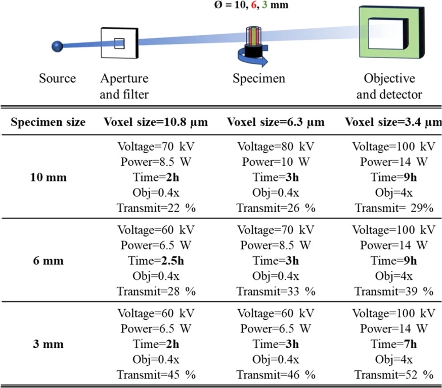 选择合适的XCT参数需根据具体应用和缺陷严重程度:对于高性能航空航天和医疗部件,建议体素大小控制在1到5微米之间,X射线能量水平在100到180千伏之间;对于一般工业和工具应用,6至10微米的体素大小可在精度和速度之间取得平衡;在大批量制造和大型AM组件中,通常需要10微米或更大的体素尺寸,X射线能量水平建议在160至225千伏之间。
