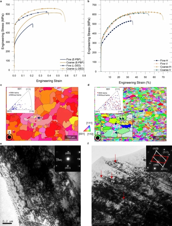 该研究的3D打印样品的近等轴微观结构打开了传统合金的适用性,如SS316L,同时具有非凡的材料性能,如高强度和延展性,机械各向同性和均匀性,以及超塑性。相反,从细粉末中获得的近单晶微观结构为打印Ni基高温合金单晶提供了指导,以获得理想的高温抗蠕变性能。这项工作为利用粉末粒度分布实现更可控、更具成本效益和可持续的金属增材制造提供了一条途径。