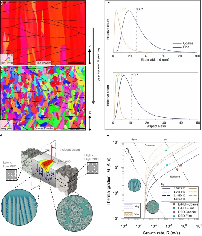 粉末粒度驱动的熔池工程应用于 E-PBF 工艺,以实现简单和大规模的晶粒控制