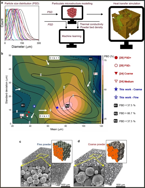 用于预测粉末粒度对烧结粉末床热物理性能影响的机器学习框架。